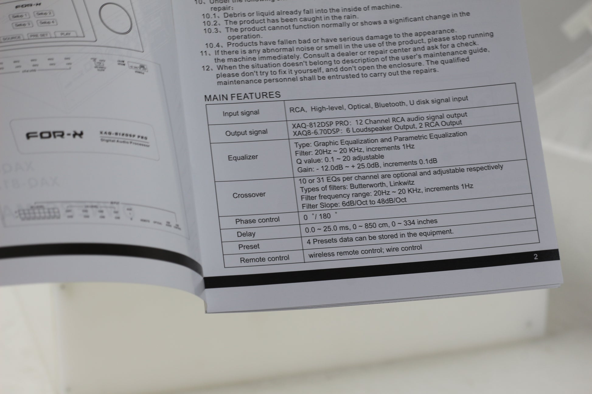OUTPUT SIGNAL : 6 LOUDSPEAKER OUTPUT, 2 RCA OUTPUT